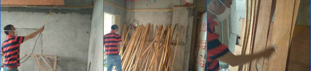 1、開工前對(duì)所有可能與木料接觸的墻體部位進(jìn)行噴藥(具體指窗套、門套、墻裙、堤角線、各類柜子與墻接觸的墻面);墻體無木料部位噴1米以下!